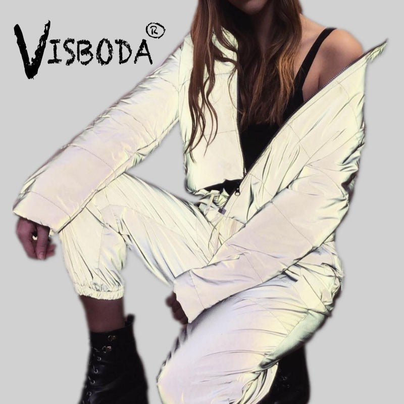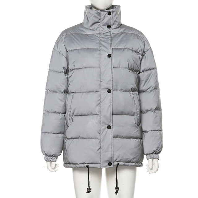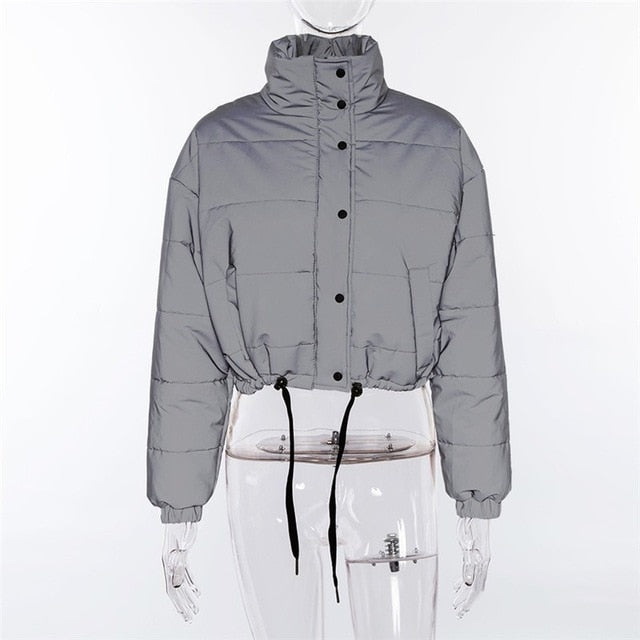 Women Oversized Cotton Cropped Jacket Fashion Winter Thick Pullover Night Reflection Coat Ins Female Warm Loose Zipper Outwear