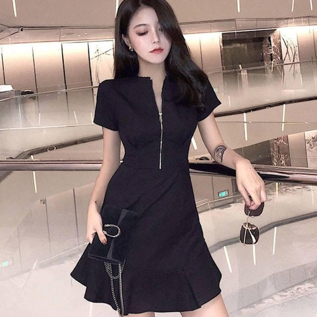 Brand Name: InboxMaterial: PolyesterDecoration: ZippersSeason: SummerWaistline: empireStyle: CasualSilhouette: A-LineSleeve Length(cm): ShortPattern Type: SolidNeckline: O-NeckSleeve Style: REGULARDresses Length: Above Knee, MiniBrand Name: Inbox