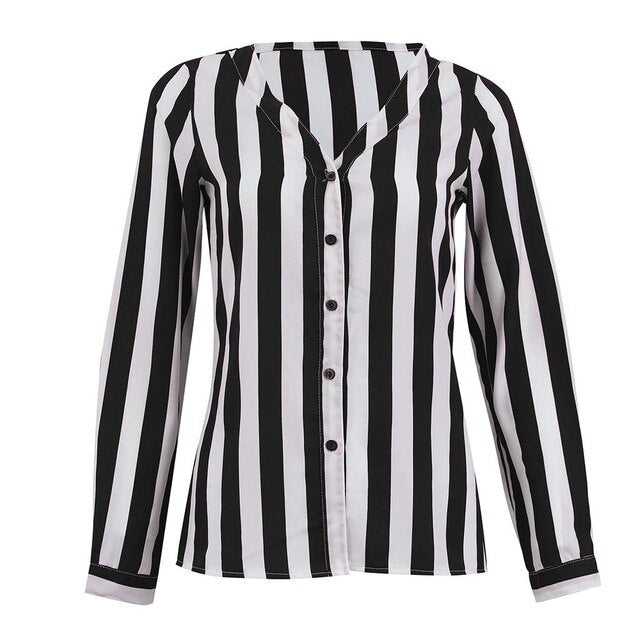 Gender: WomenMaterial: PolyesterClothing Length: REGULARStyle: CasualFabric Type: BroadclothSleeve Length(cm): FullDecoration: NONEPattern Type: StripedCollar: V-NeckSleeve Style: REGULARModel Number: Women ShirtsBrand Name: MeihuidaGender: Women